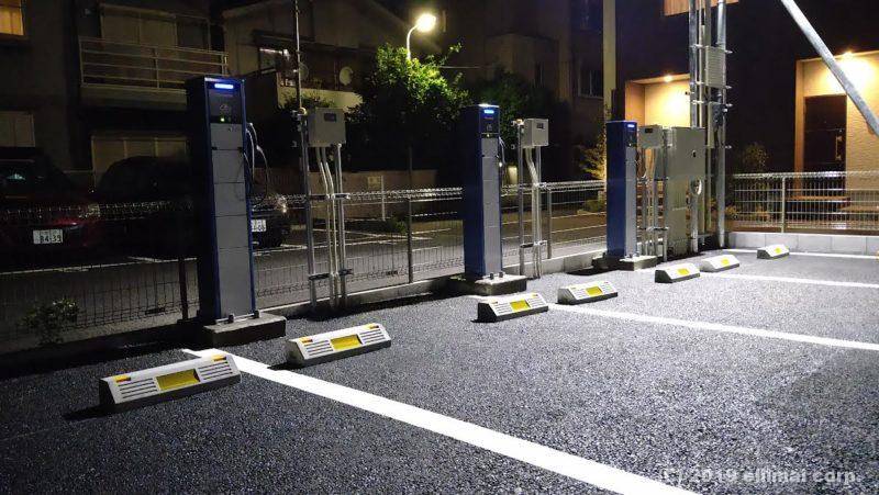 施設の電気自動車充電設備、パナソニックエルシーヴを装備した駐車場を東京都内で完成させました。