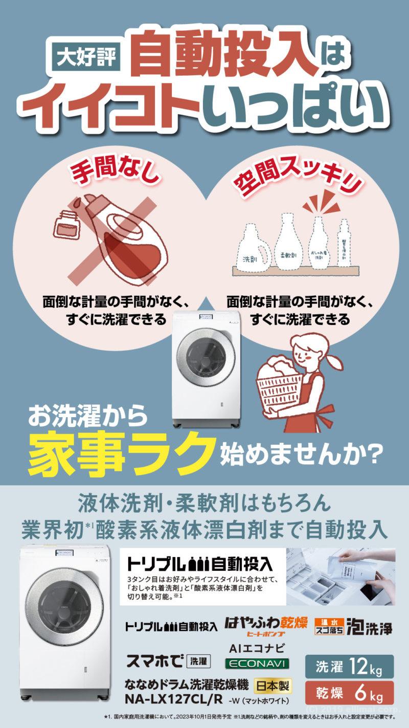 この機会に、パナソニックの高機能ドラム式洗濯機を手に入れて、便利で快適な洗濯ライフをお楽しみください!プレゼントの洗剤セットも数量限定なので、お早めにご購入を!